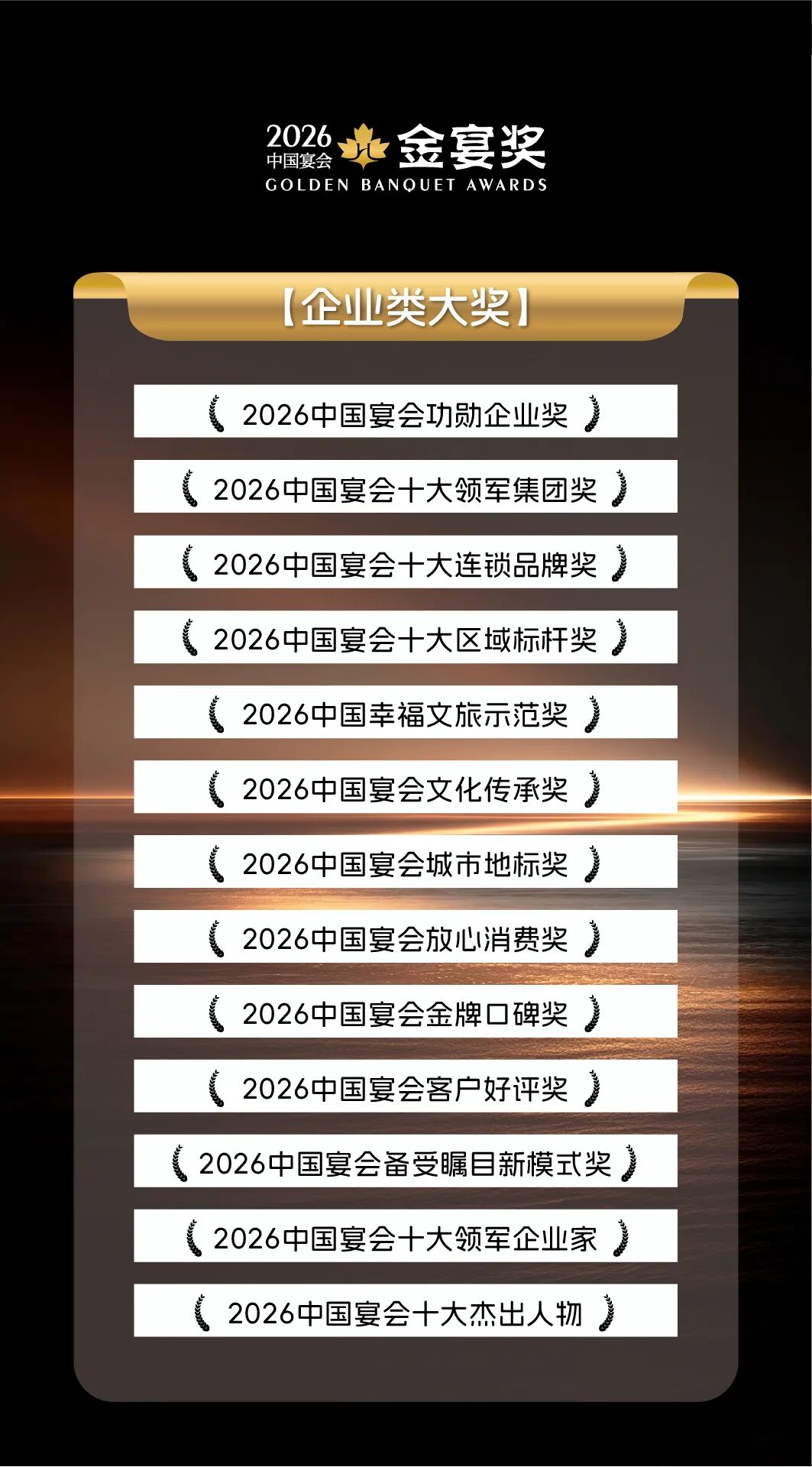 中国宴会年度至高荣誉,<奖项申报>通道正式开启,诚邀全国宴会企业及供应链合作伙伴踊跃自荐、积极推荐,共赴荣誉之约!