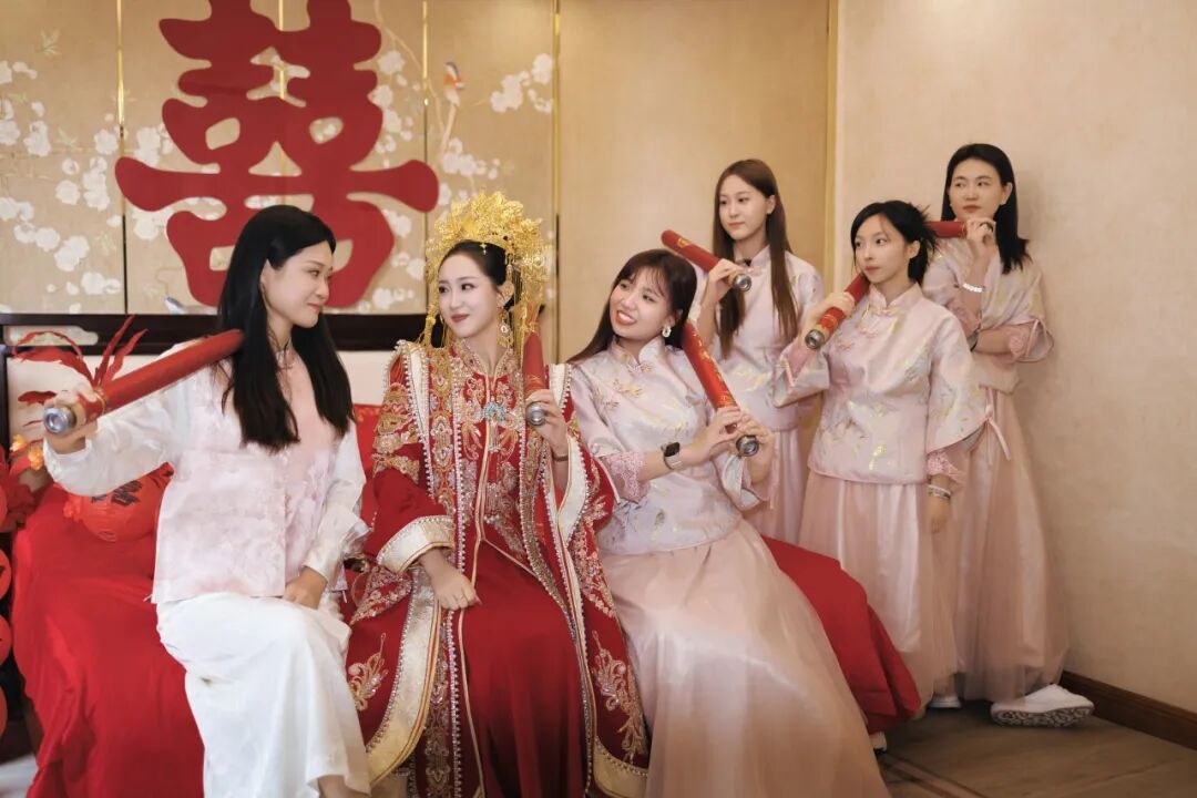 姐妹和家人可以抓紧时间吃早餐,准备敬茶用具,或者接亲游戏时需要用到的物件等等。