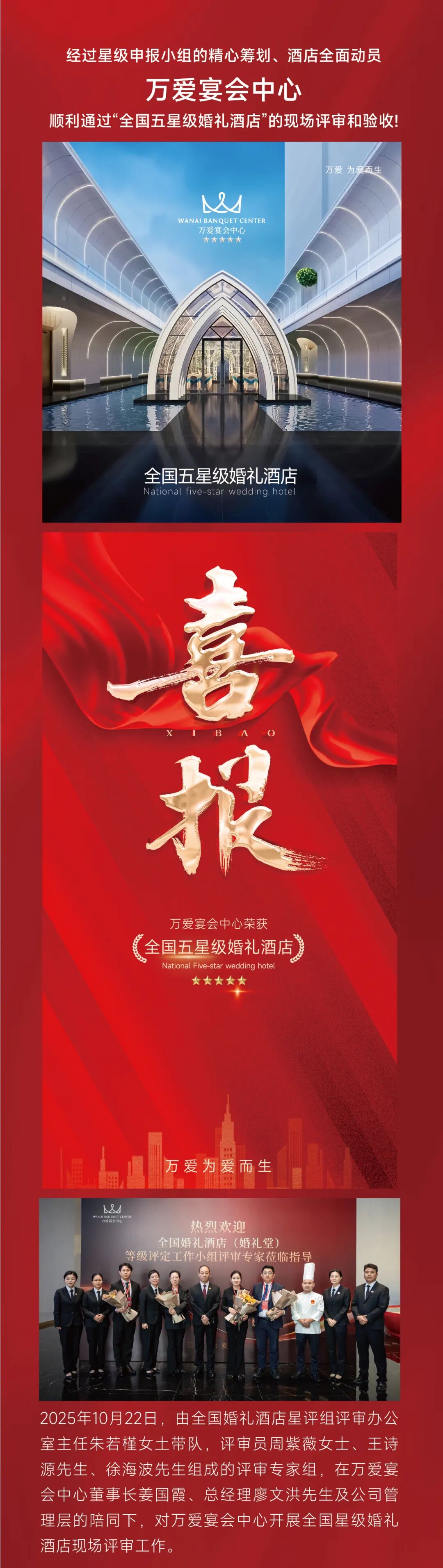 热烈祝贺万爱宴会中心,顺利通过 “全国五星级婚礼酒店” 现场评审与验收!