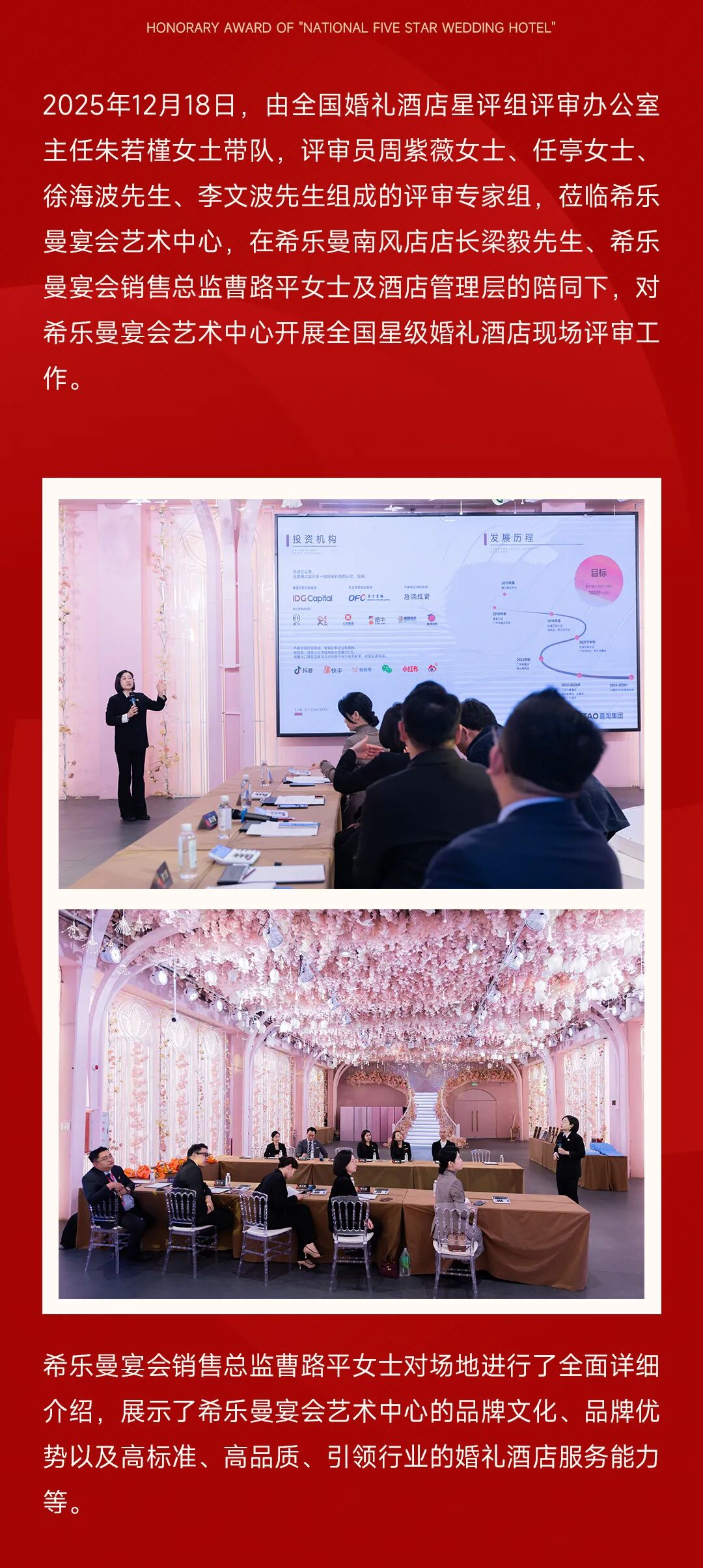 热烈祝贺希乐曼宴会艺术中心,顺利通过“全国五星级婚礼酒店”的现场评审和验收!