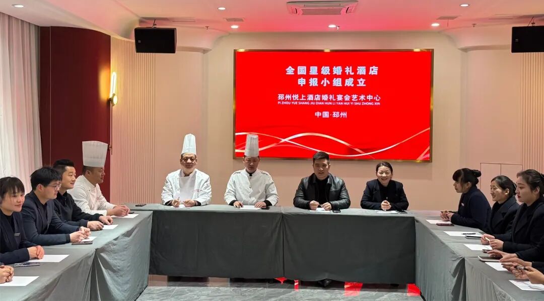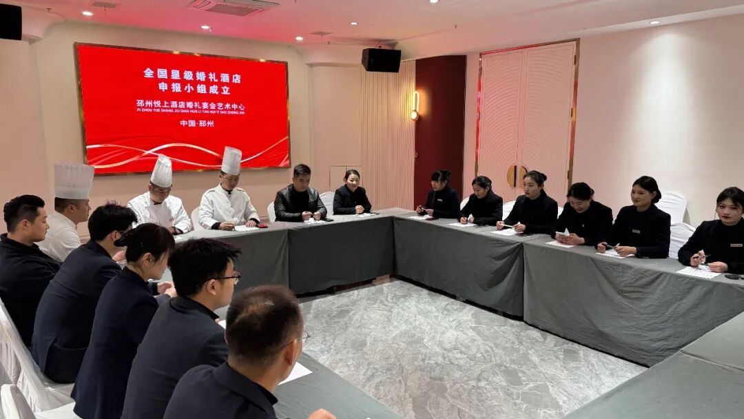 会上,各部门负责人积极发言,大家一致认为创建全国星级婚礼酒店对邳州悦上酒店婚礼宴会艺术中心品牌建设及管理和服务水平的提升有着重要意义。