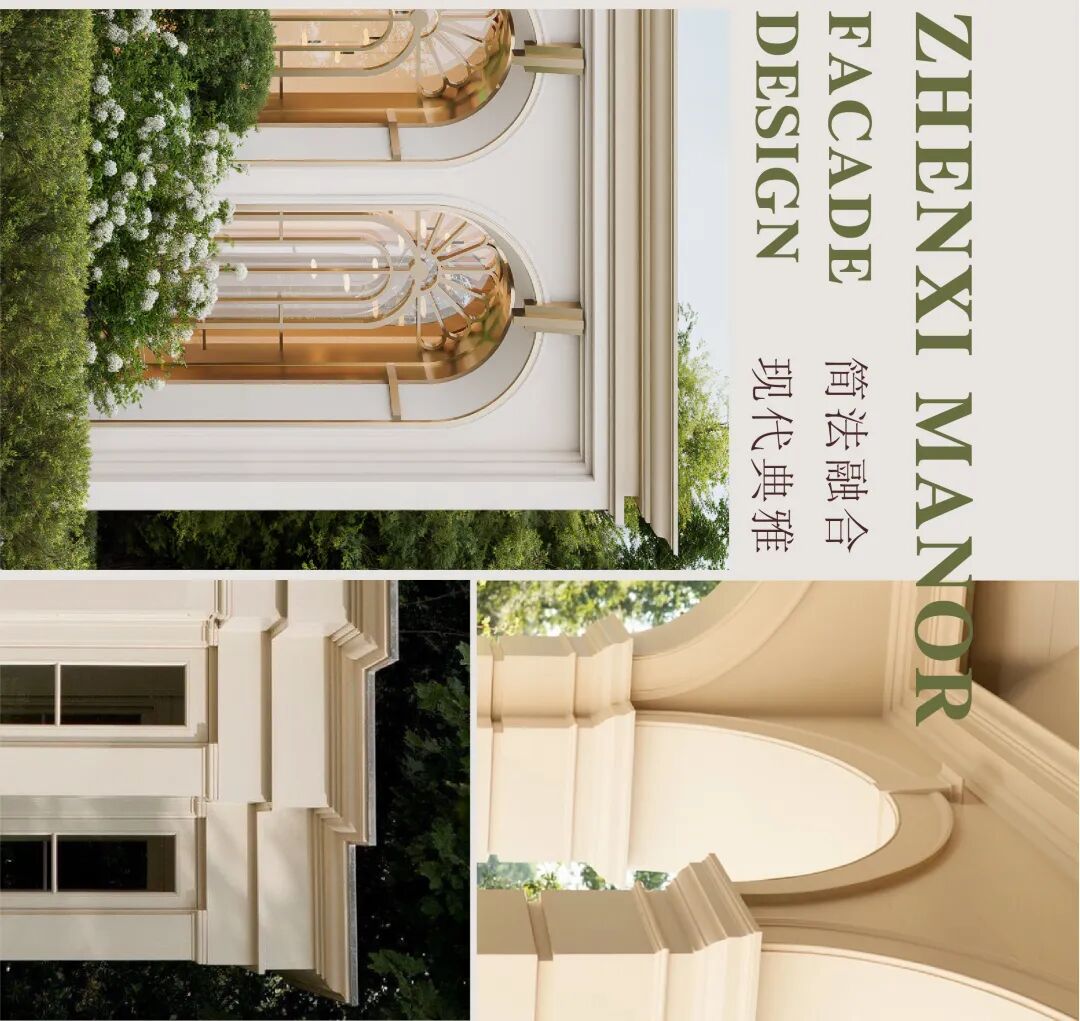 The top of the building is designed with a classic French hat (Mansard Roof variant or deep eaves). Jiangsu Yongchen Design Firm has simplified it, retaining the elegant slope and contour, but simplifying the decoration. The eaves are decorated with simple line feet below, echoing the facade lines. The classic contrast between the dark gray roof tiles and the beige walls creates a calm and atmospheric atmosphere, further enhancing the overall sense of the building and the stable temperament of an English manor.