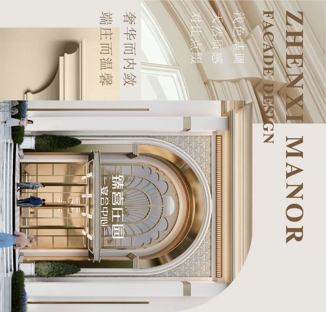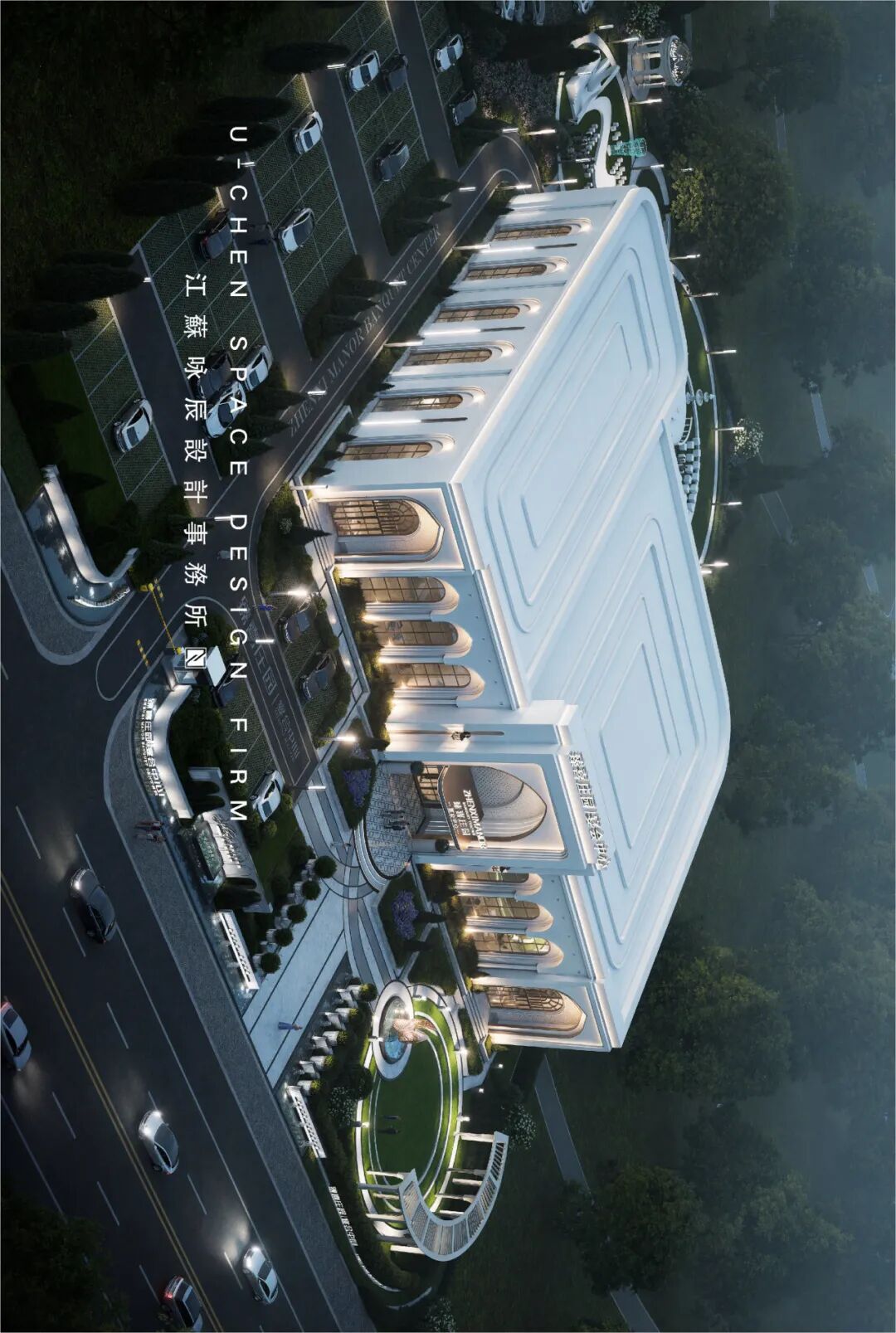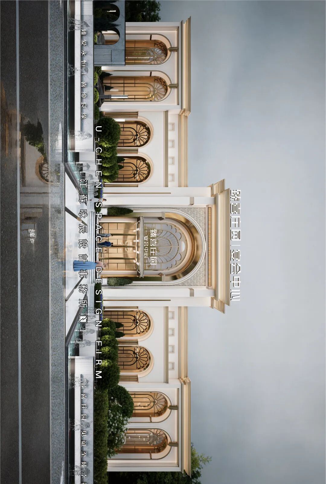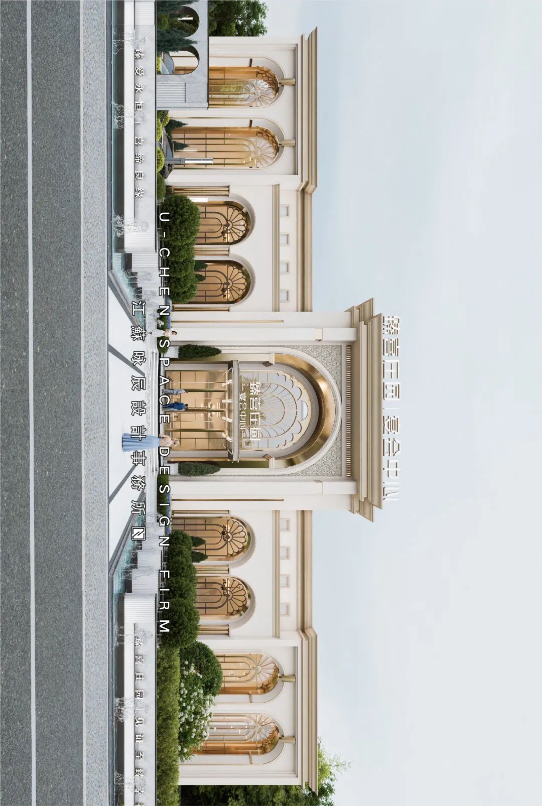 The exterior design draws on the solemn ceremony of classic European architecture and the exquisite aesthetics of modern minimalist art. Jiangsu Yongchen Design Firm has created a highly infectious romantic place through the use of white gold as the main color tone, rhythmic arch elements, layered and progressive building volumes, as well as dynamic light and shadow and simple and atmospheric modern water features.