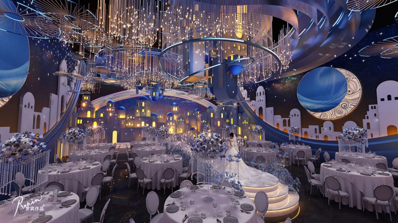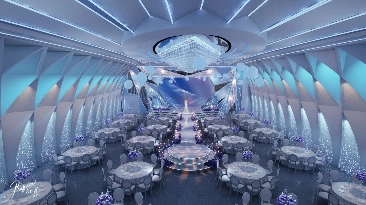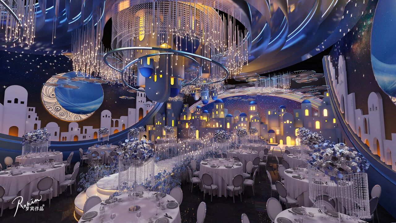 在婚礼堂的选择上,考虑到城市的属性和项目定位,我们均选取经过市场验证的爆款厅。建设时以市场反馈进行优化:将“奥斯卡厅”调整为“圣托里尼”;将可变中式的水晶厅升级为5D全息厅,打造“餐秀结合”的沉浸式体验,进一步提升项目亮点与市场竞争力。