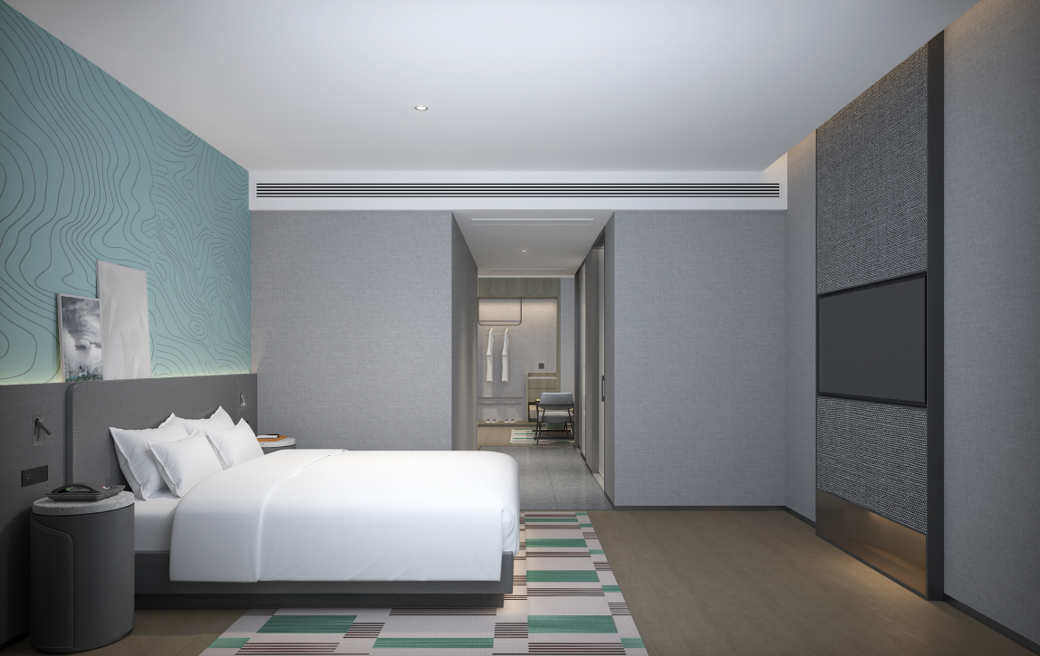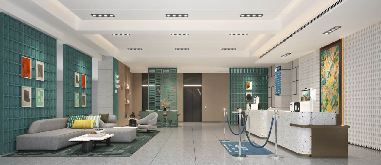 酒店设计以独具特色的现代风格碰撞经典元素,呈现高级灰色调,通过撞色丰富的立体层次,将功能主义和装饰艺术融为一体,为“城市新中产”打造实用性和艺术感兼具的住宿体验。