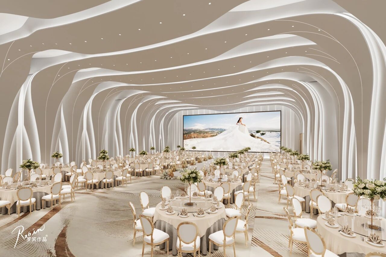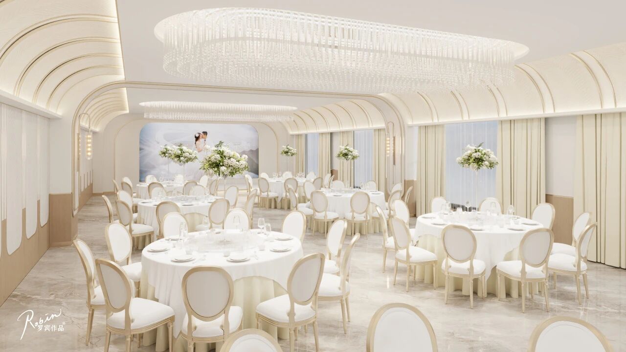 悦瑞厅以多元功能为设计初衷,作为硬装婚礼堂的典范。