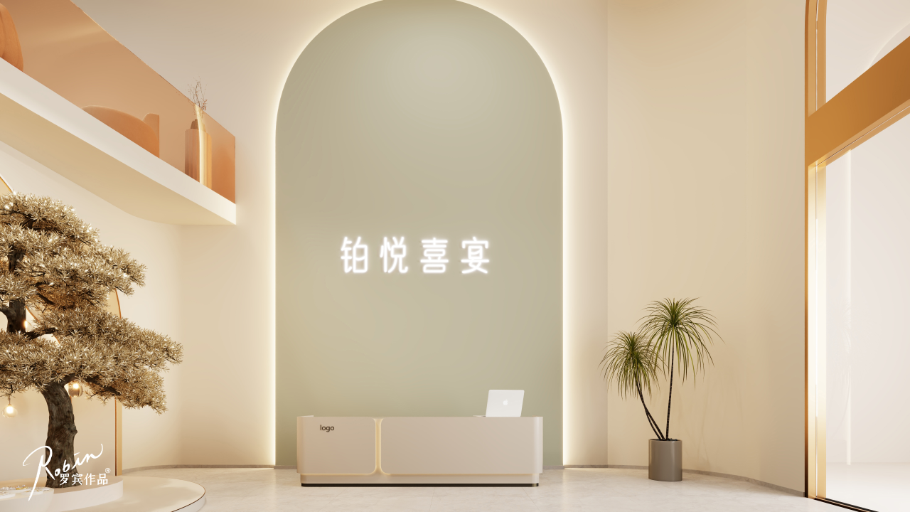 通过纵深布局与层次构建,配合软装点缀,强化婚礼质感与氛围,既为新人及家人提供舒适放松的洽谈休息区,也激发其拍照分享意愿,助力品牌传播与推广。