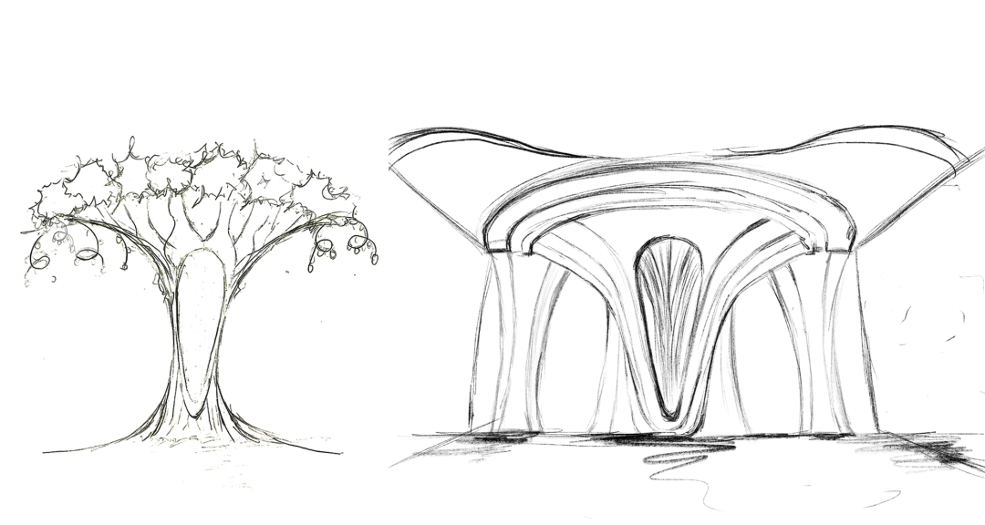 我们以此作为总部大楼的设计灵感,抽象化树干挺拔的姿态,也似生长的树枝、又似树冠,摩登设计加强空间感,形成消费者进店的第一视觉冲击力与辨识度。