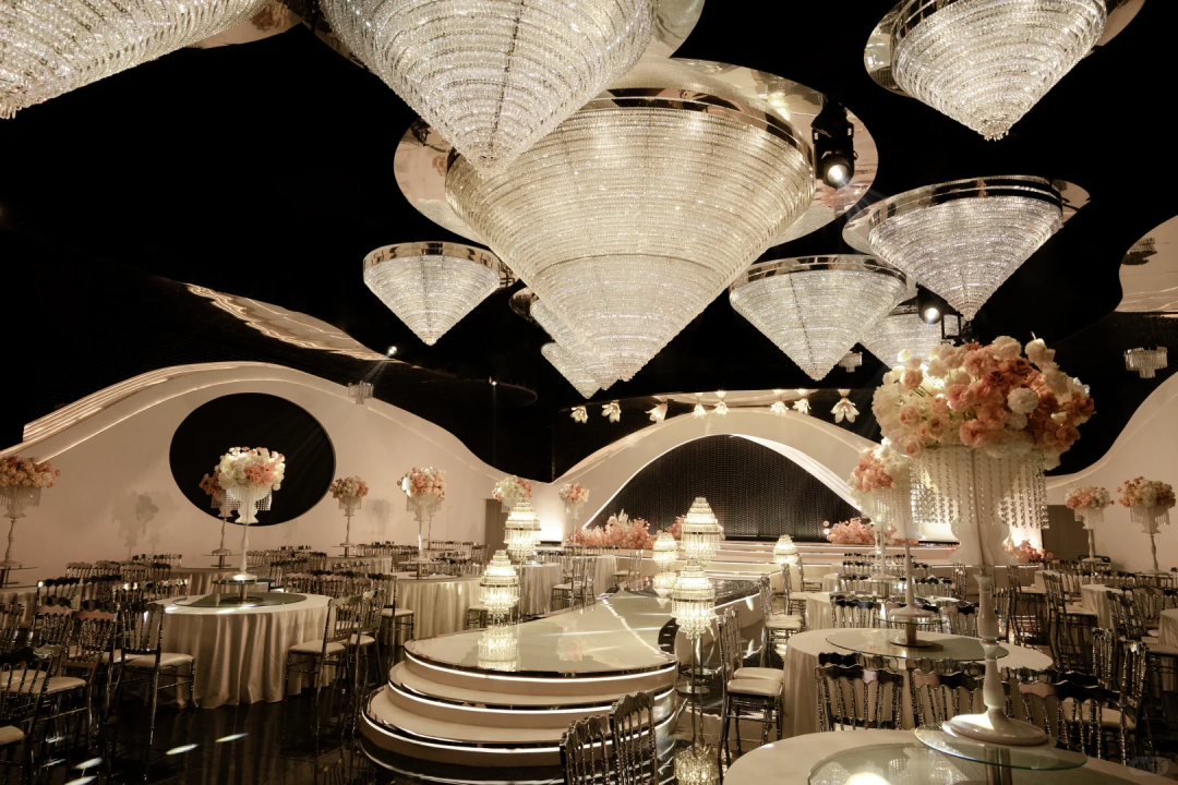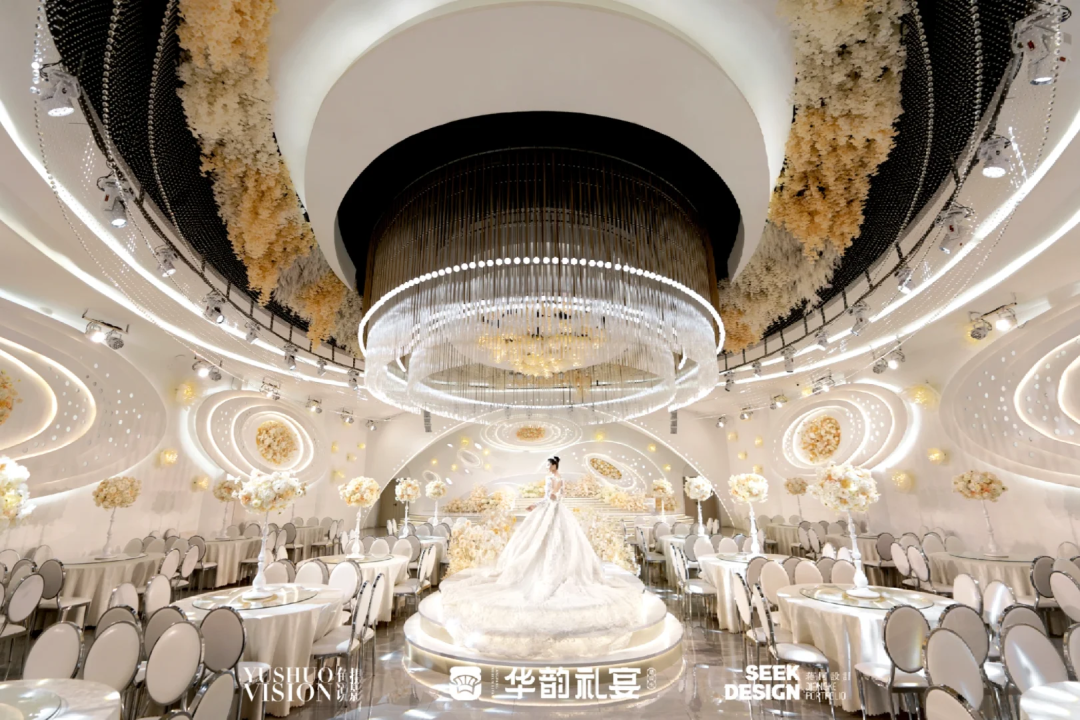 华韵礼宴占地超6万平米,拥有9大宴会厅,每个宴会厅都有各具特色的灯光秀,一站式解决备婚烦恼~