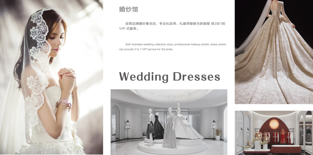 自营品牌婚纱集合店,专业化妆师、礼服师能够为新娘提供2对1的VIP式服务。