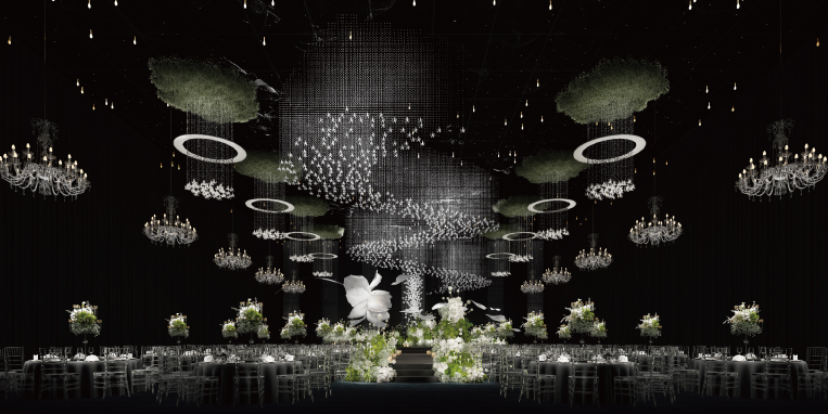 该宴会厅面积近750平,可容纳32桌宾客。以纯洁无暇的白色作为主基调,上演一场令人陶醉的梦幻视觉盛宴。