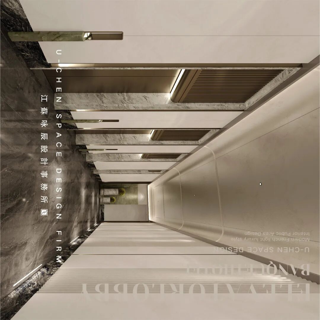 The elevator hall design continues the unified overall style, serving as an important transitional node in the banquet space, creating a refined and ceremonial atmosphere of arrival. Jiangsu Yongchen Design Firm forms a rigorous symmetrical sequence with vertically arranged elevator doors, paired with natural marble walls and floors that are all high. Its rich and natural texture establishes a calm and elegant tone. The metal frame and decorative lines outline the contours with precise proportions, revealing luxury in the details. Create an elegant, warm, and modern space that seamlessly connects public areas with private banquet experiences.