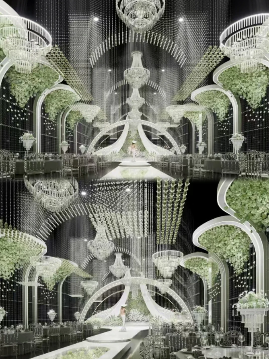 复古拱门、水晶吊灯、绿植造景