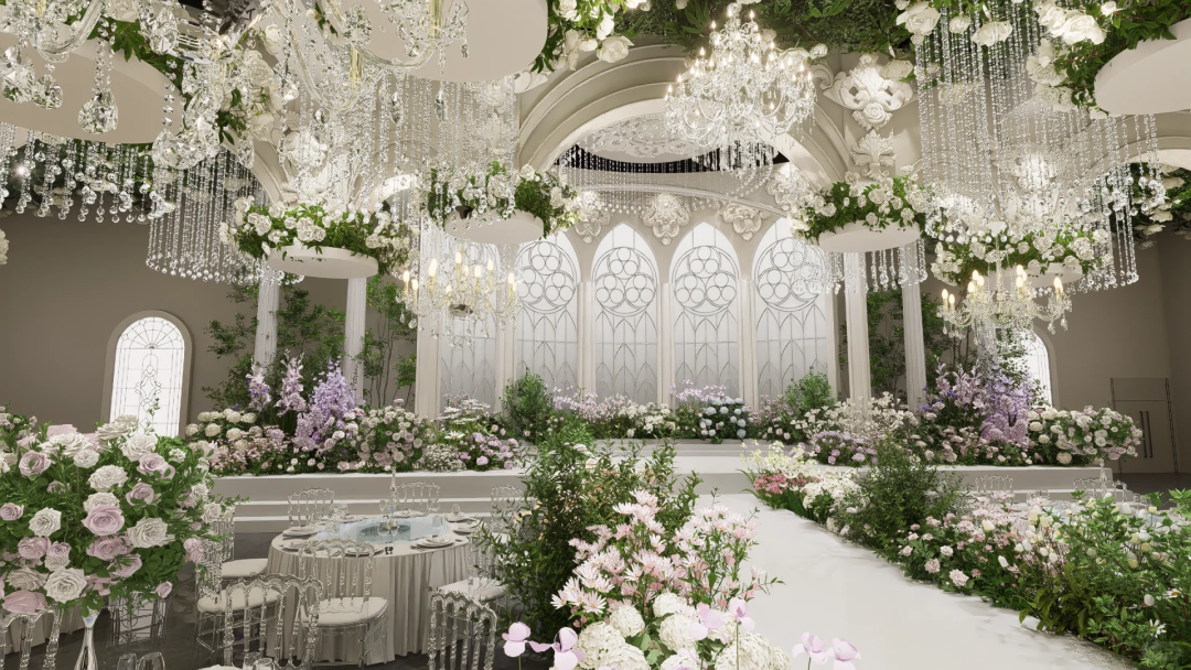 色彩与游离光影糅合,编织出一场盛大梦幻婚礼梦