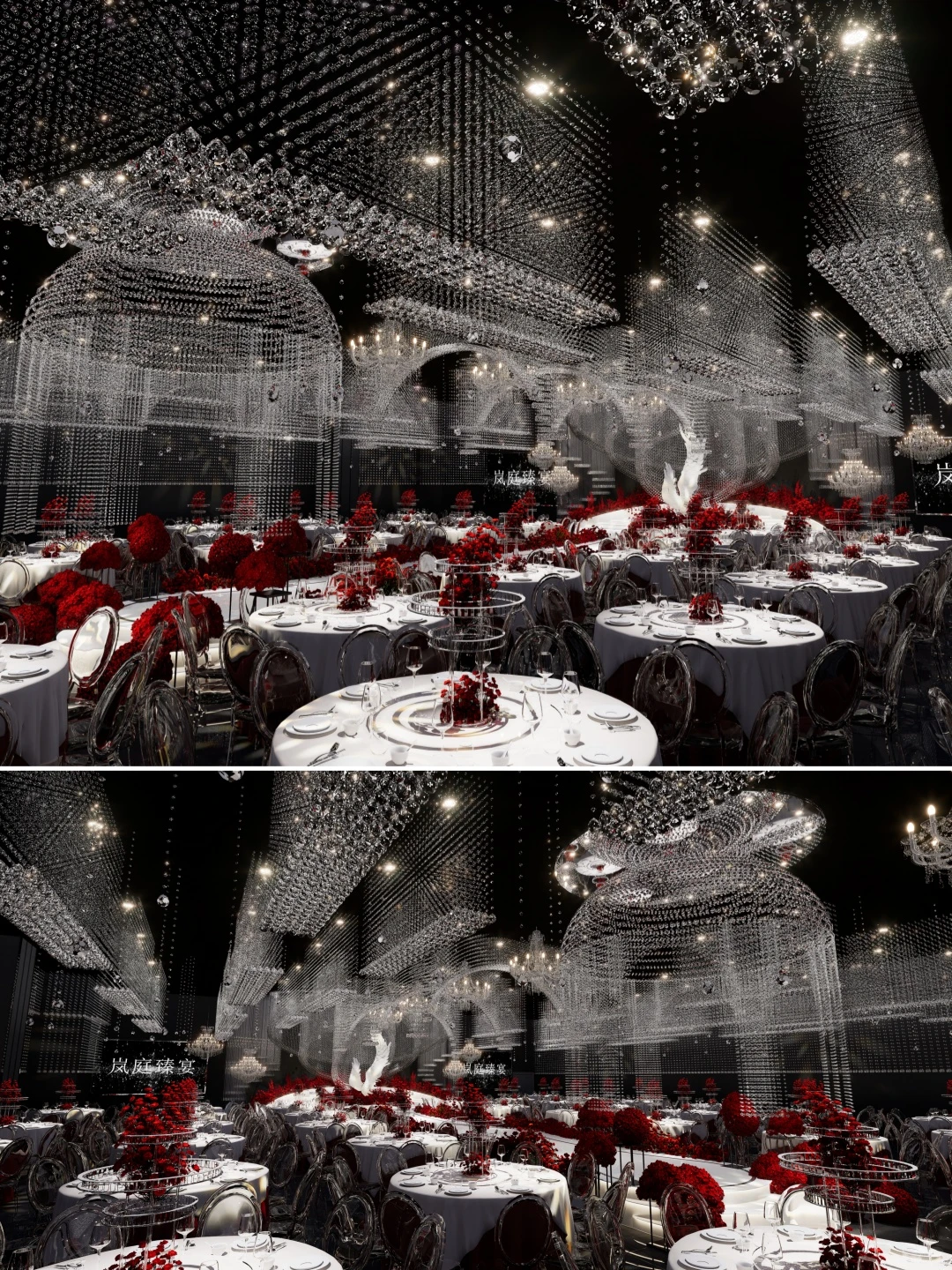 水晶悬挂近千朵定制花朵