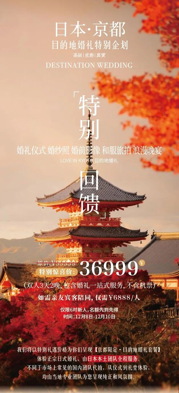 日本·京都 | 秋日限定婚礼企划,双十一限时礼遇仅36999元(原价99999元)把浪漫染在红叶里!