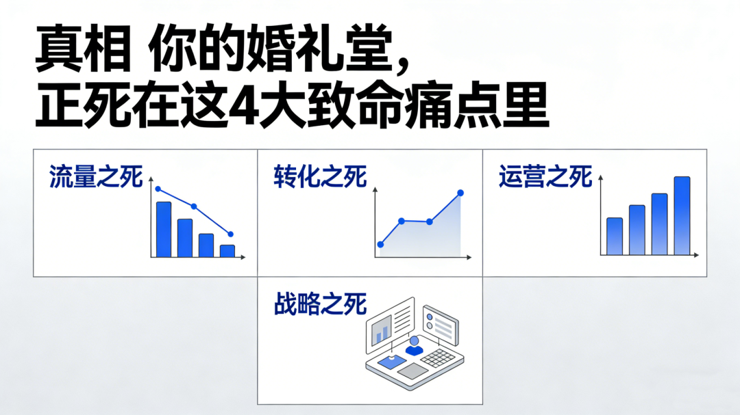2026年,婚礼堂与宴会酒店正在经历史上最残酷的洗牌,结婚人数持续下滑、新店越开越多、装修投入上千万、同城价格战杀红眼;抖音、小红书、美团点评全做了,钱烧了、人累了、线索没几条;销售靠销冠、团队没体系、淡季空场、旺季不赚……