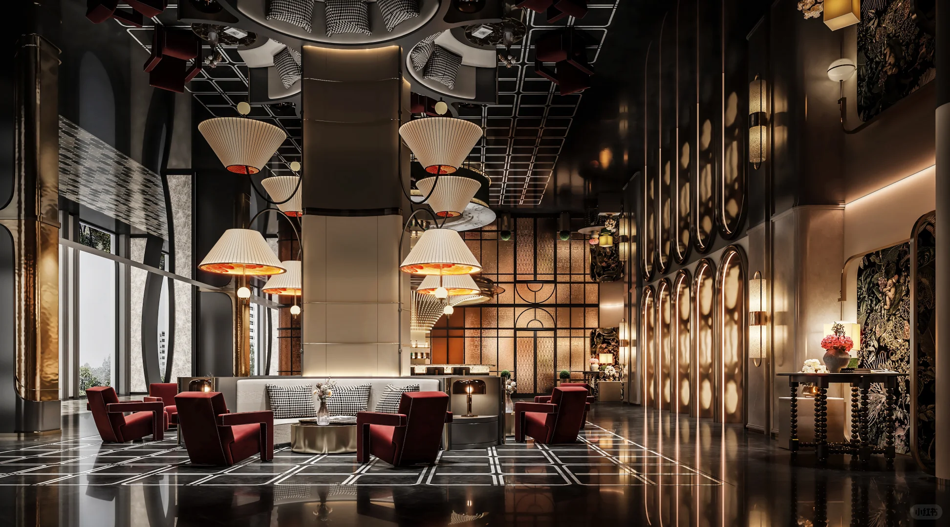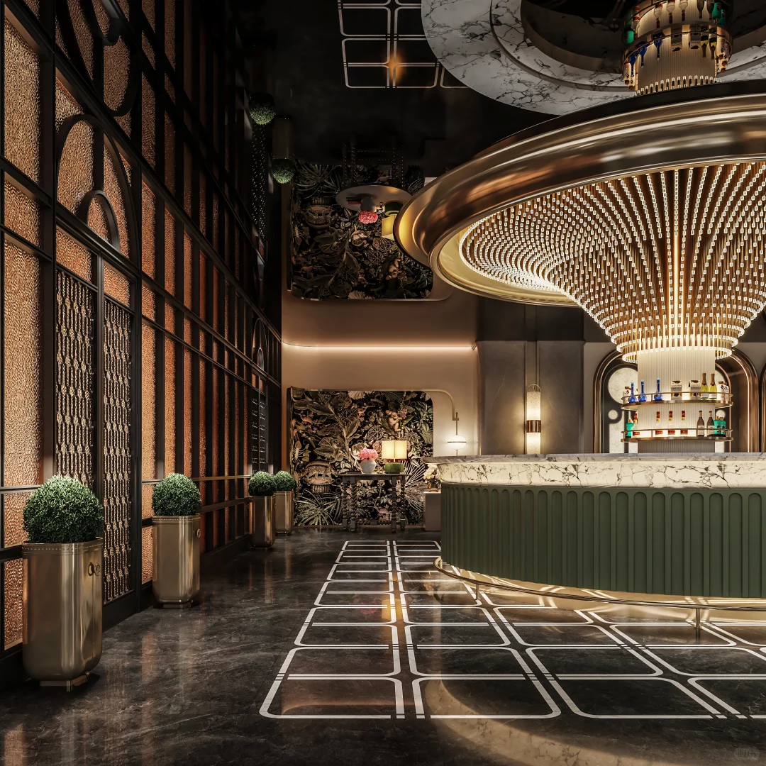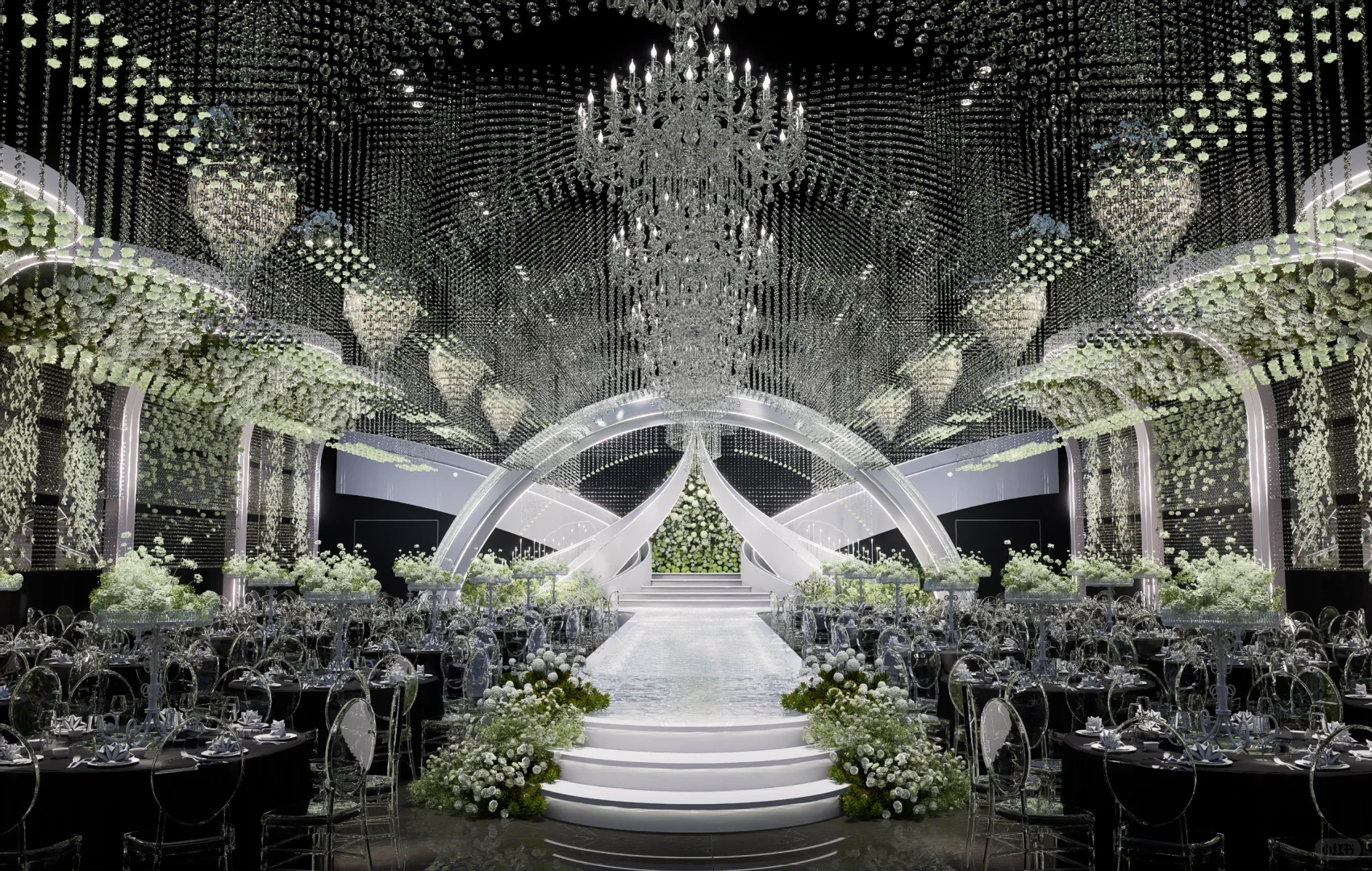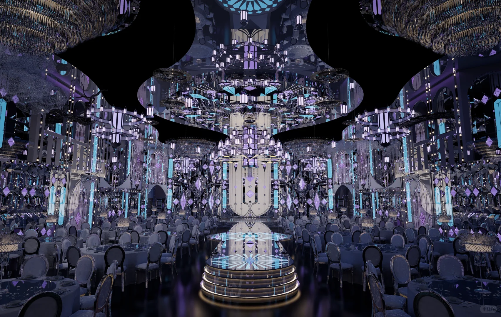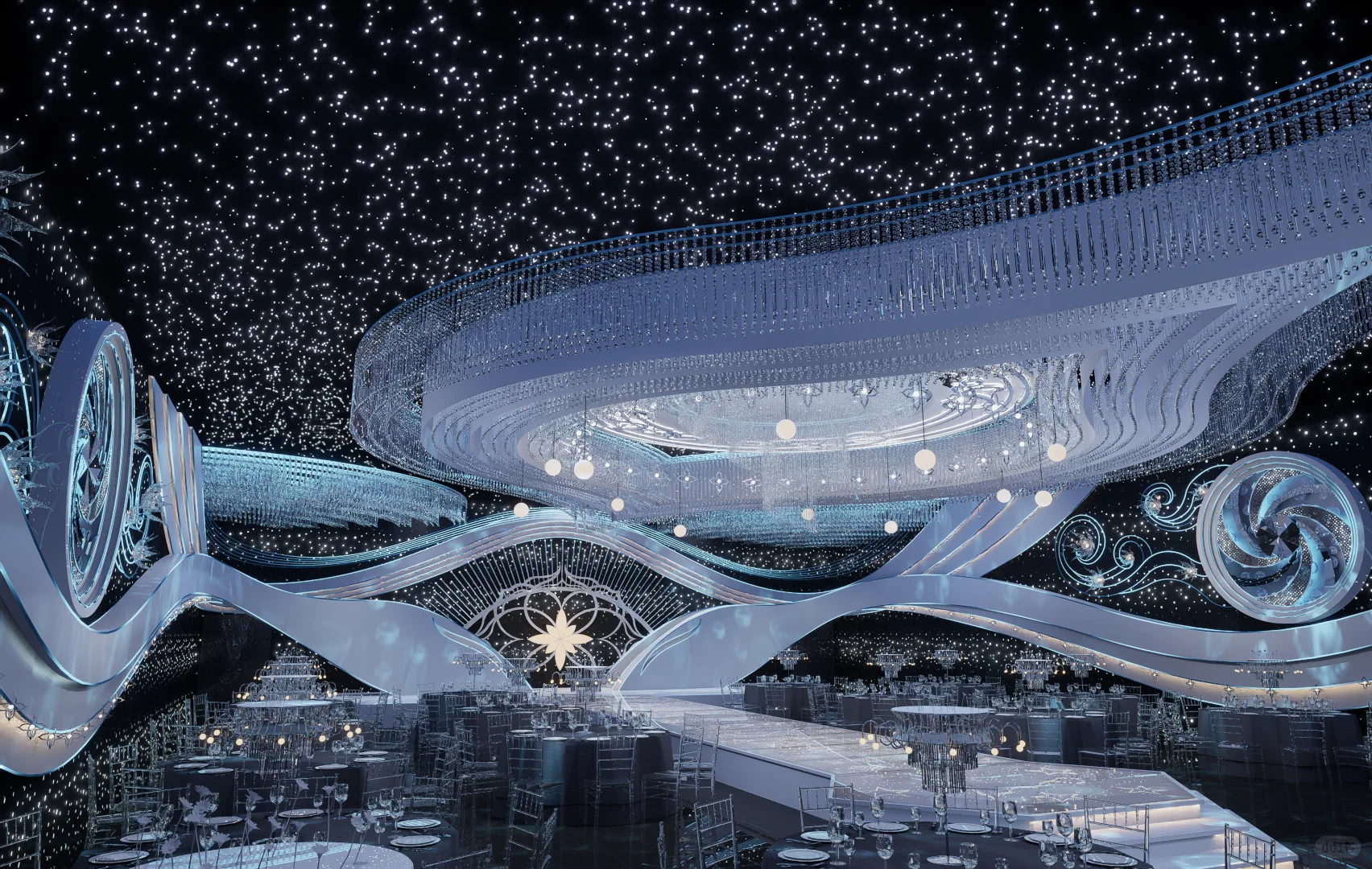 仪式区的多层次曲线条衔之水晶垂落
