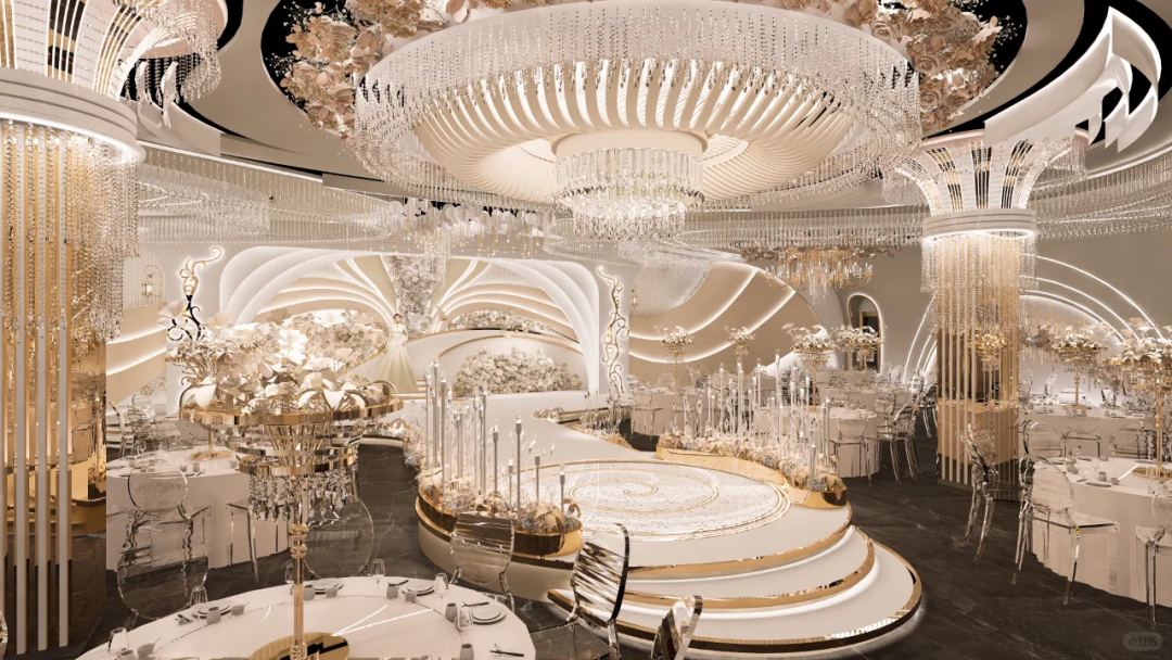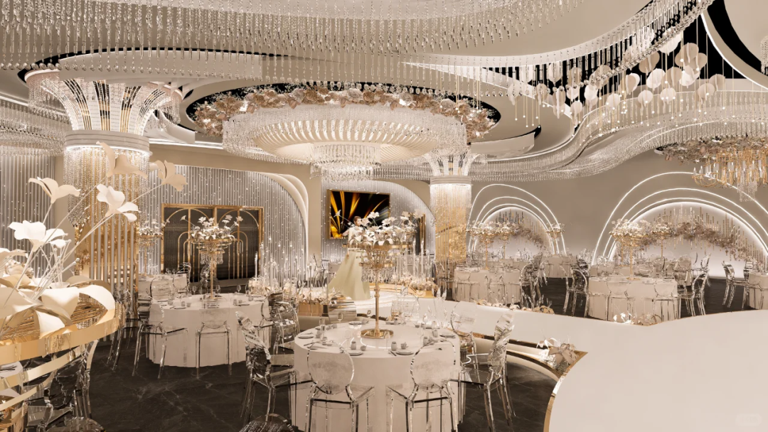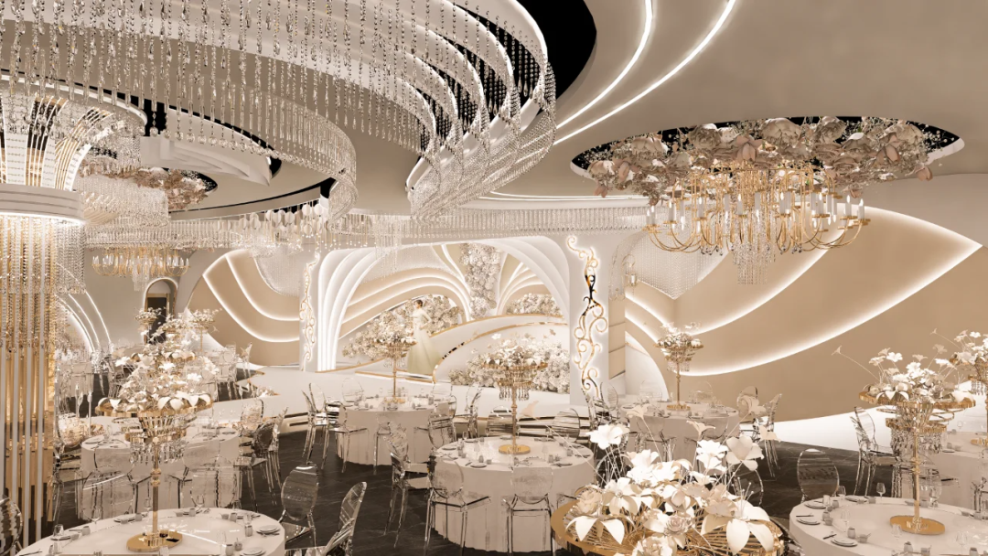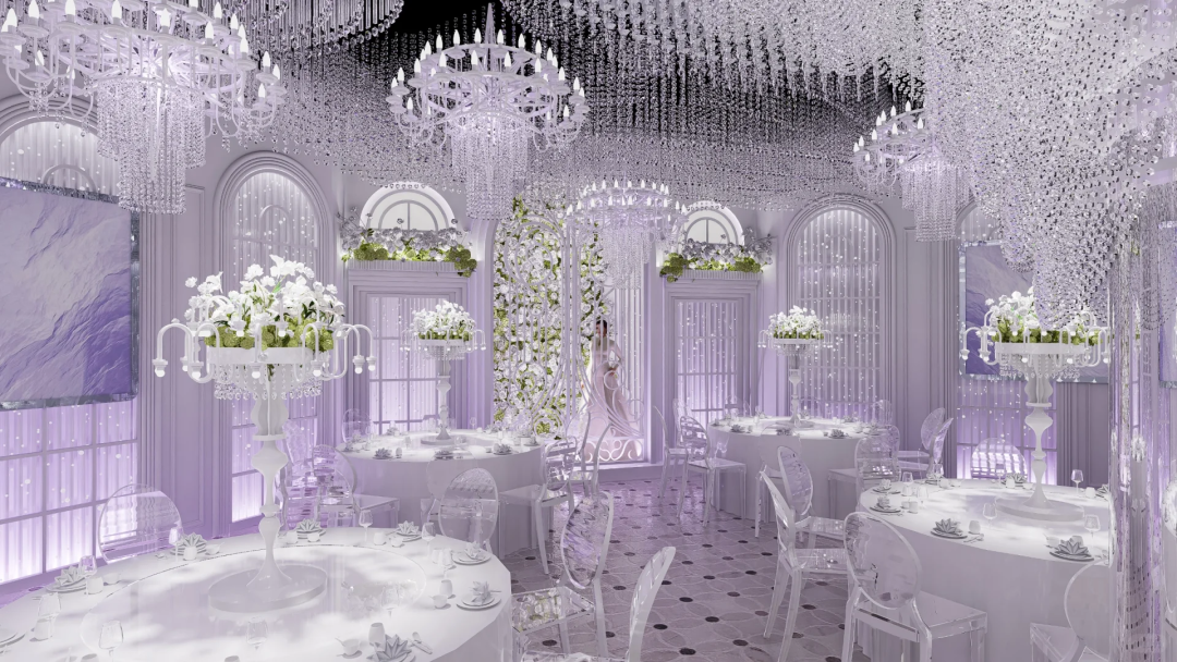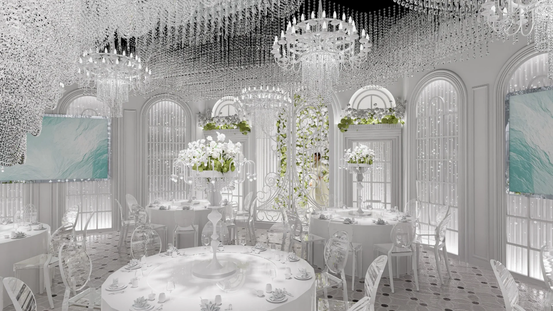 这里不仅仅是一场简单的宴会,更是一次穿越时空的极致浪漫之旅。在这个美妙的空间里,古典与现代元素相互交织,传统与自然、奢华完美融合。