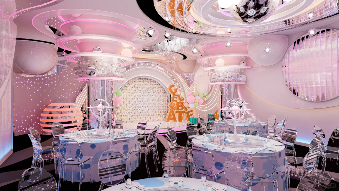 采用米白、浅灰与淡蓝等中性色调,营造出轻松愉悦的氛围,适合多种宴会主题。