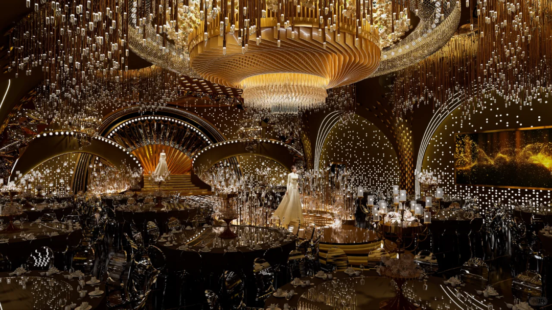 尊贵奢华的宴会环境成为许多人的优选,因此,我们撷取奥斯卡颁奖典礼的璀璨,打造 一处以金色为主色调的宴会空间。