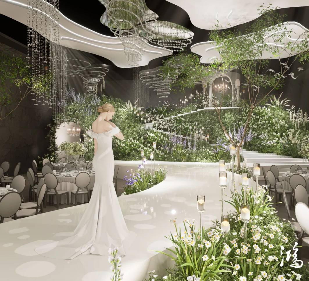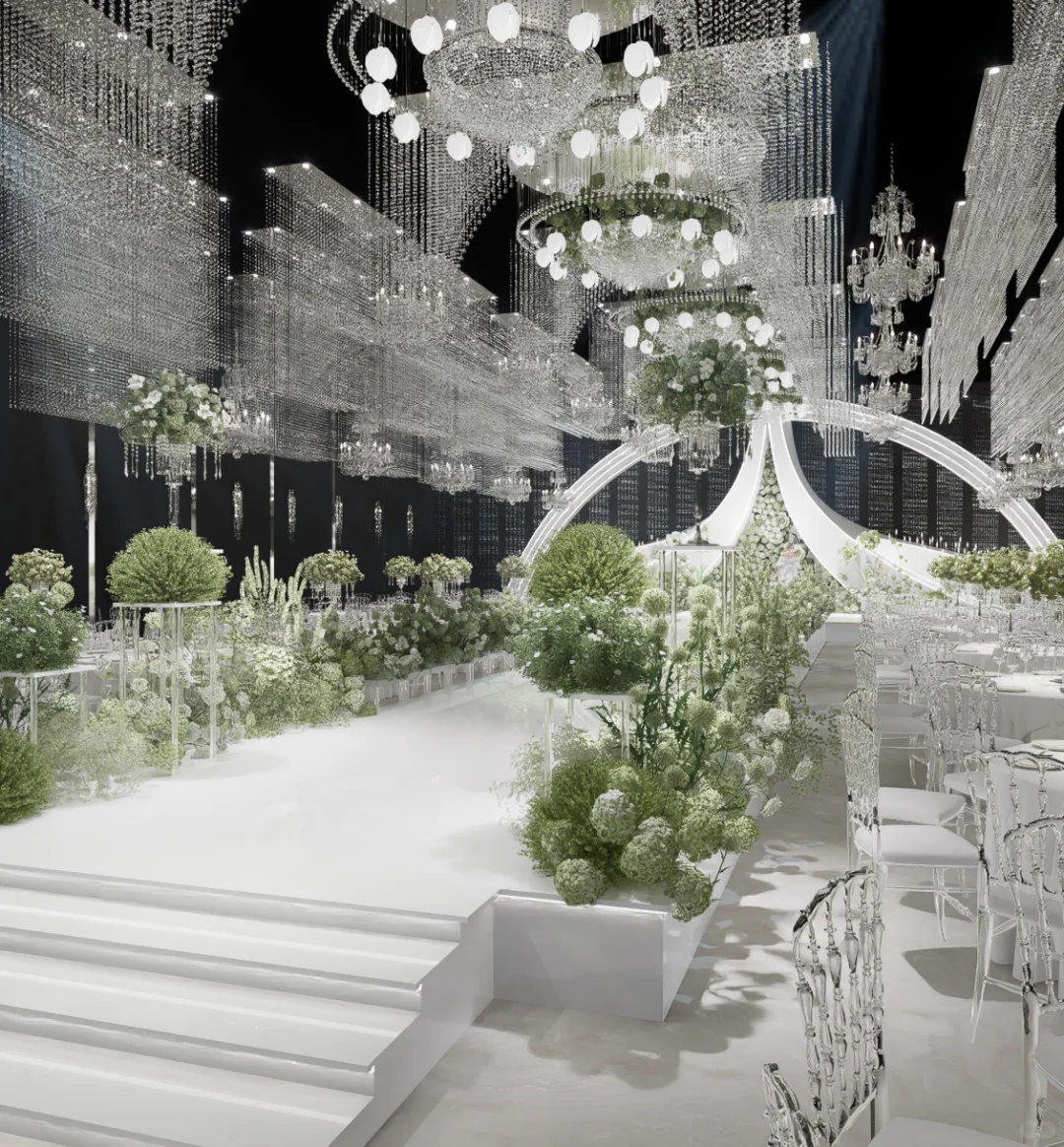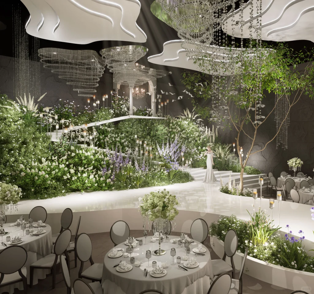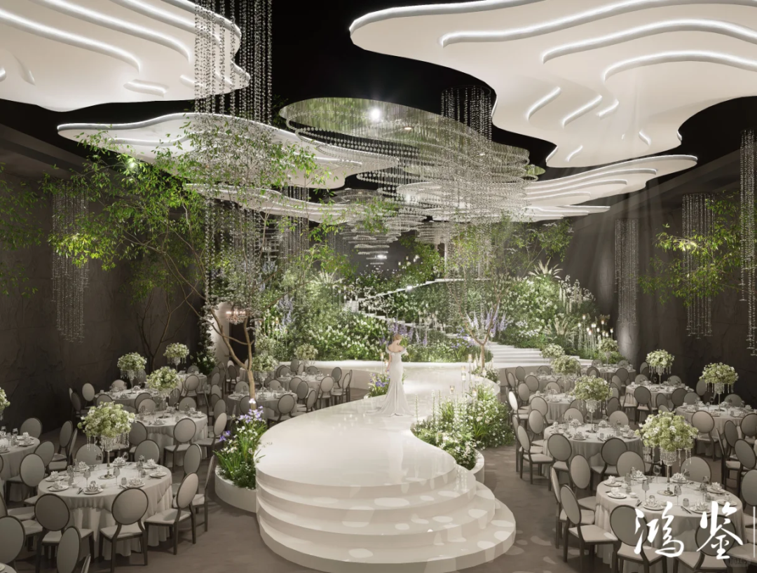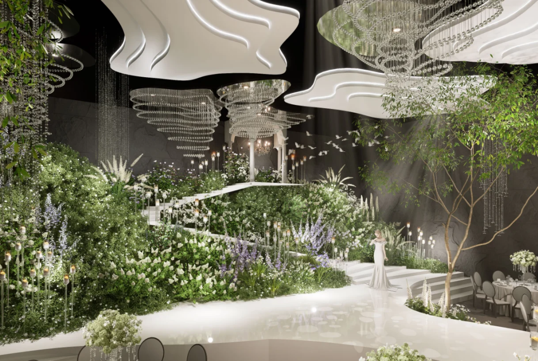 纯净极简的搭配360°的水晶全景布置