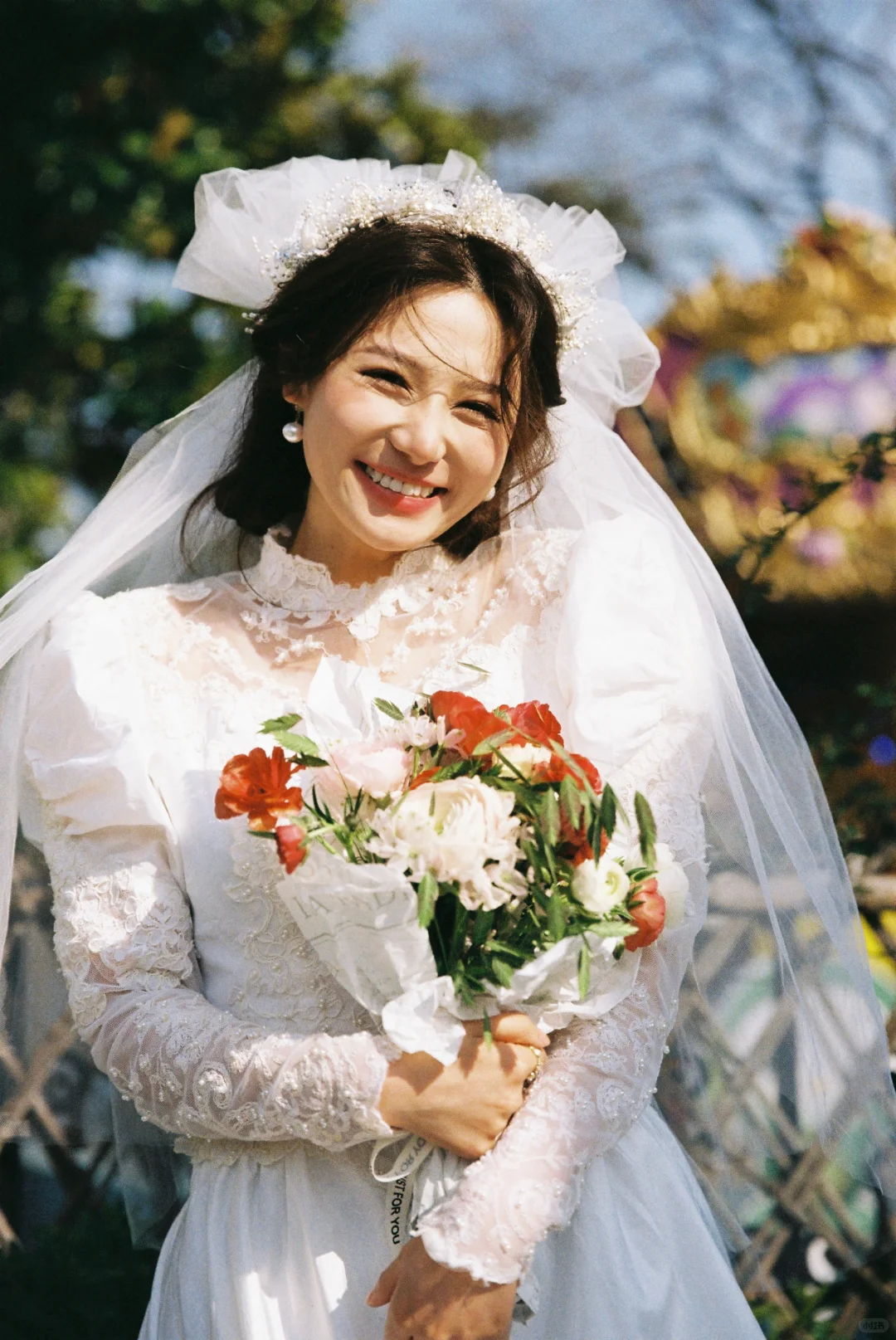 穿上婚纱的那一天,看着镜子里做完妆造的自己,美豆没忍住哭了。