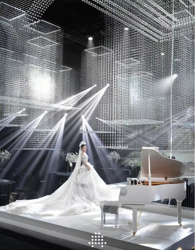杭州滨江开元名都大酒店作为浙江本土高端酒店品牌的重要标杆,始终致力于提升宾客的多元化宴会体验。本次合作中,典酷品牌专业设计团队以“多面空间”为理念,对酒店原有宴会空间进行系统性升级。万余颗定制水晶与环绕式光源系统交织出通透璀璨的光影空间,低饱和度色调及轻奢材质营造出经典而不失现代感的优雅宴会氛围。依托专业级舞美与4D数控系统,风格一键切换,多面考究质感。