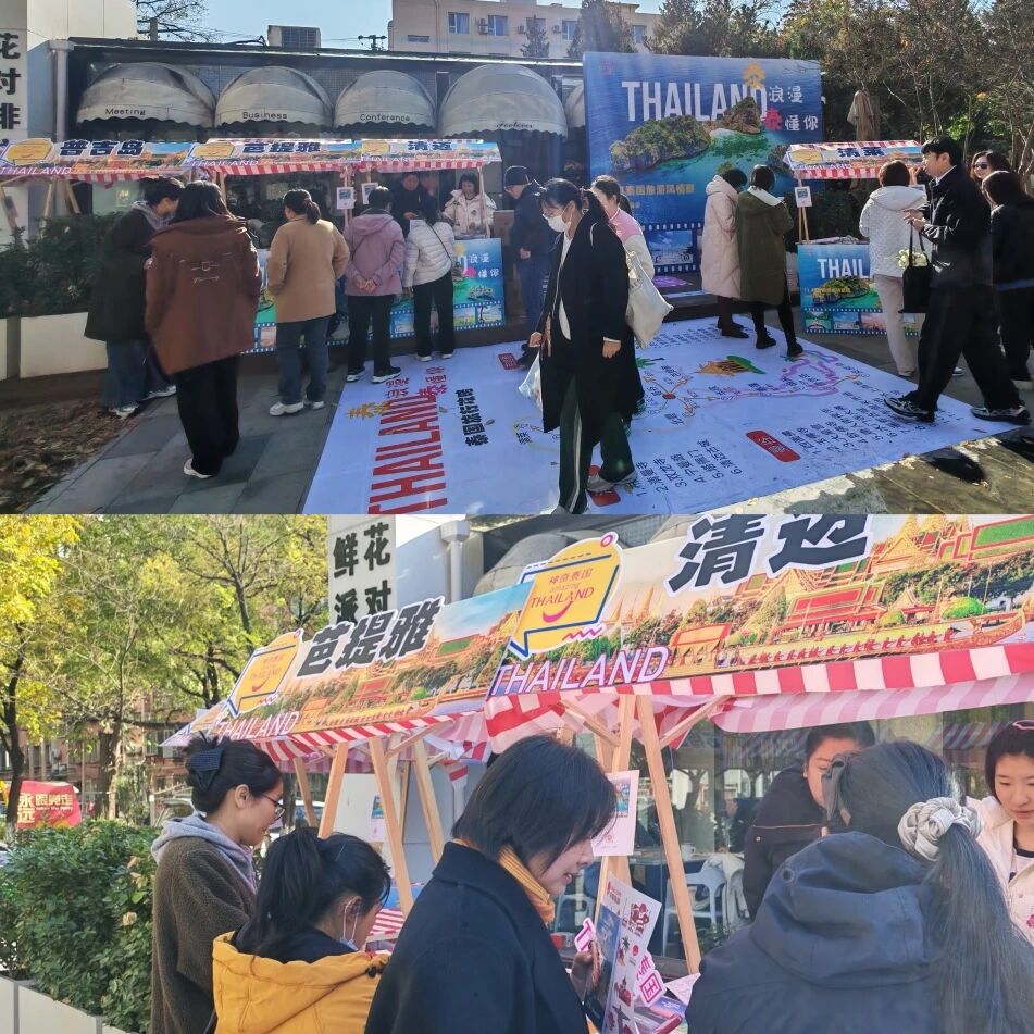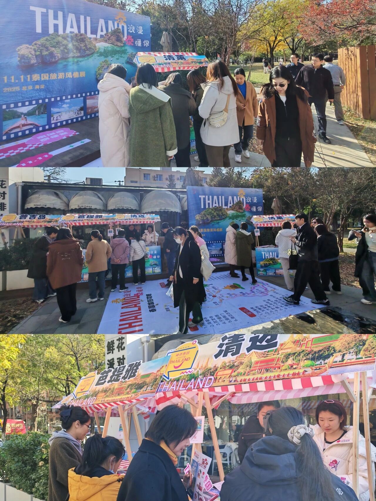 2025 年 11 月 11 日,“泰浪漫·泰懂你”泰国旅游风情展在 北京海淀区双榆树公园温馨亮相,为领证新人和社区居民带来充满泰国气息的节日体验。