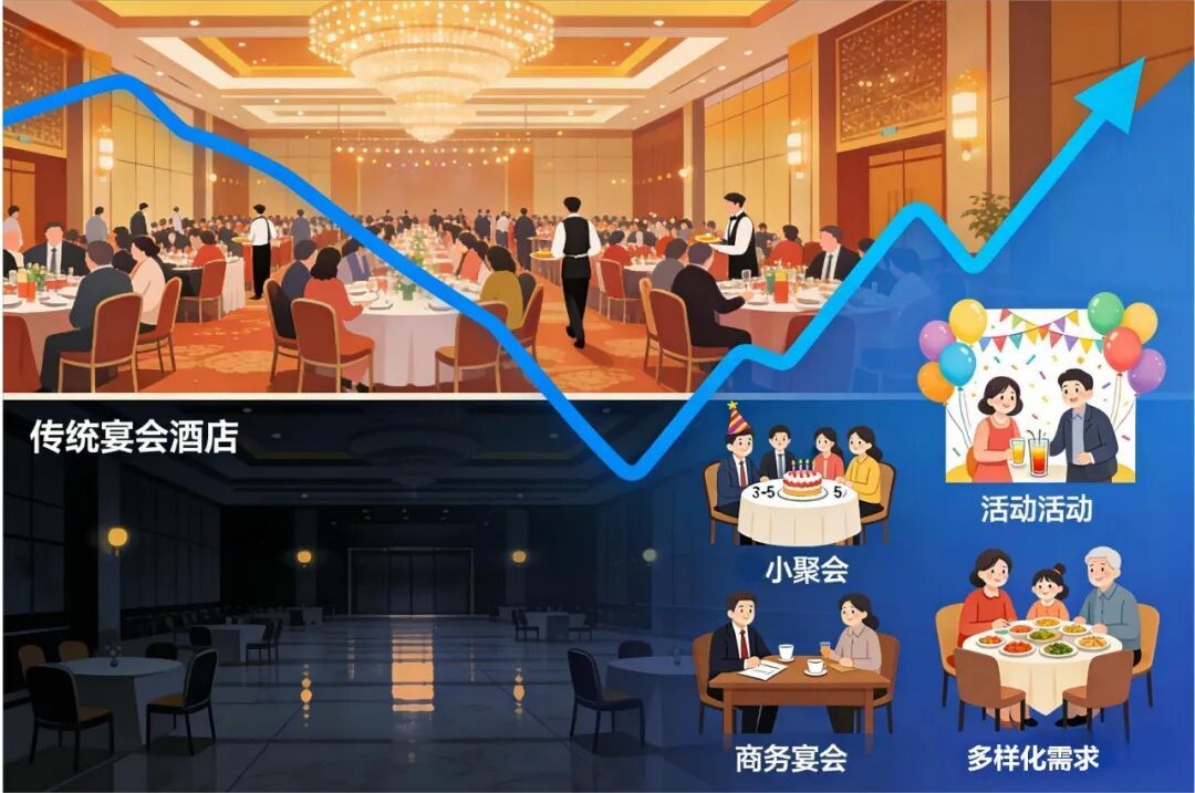 传统宴会酒店业绩普遍呈现显著的“脉冲式”特征——高度依赖春秋旺季,淡季业绩断层。这种模式抗风险能力弱,难以适应新的市场环境。
