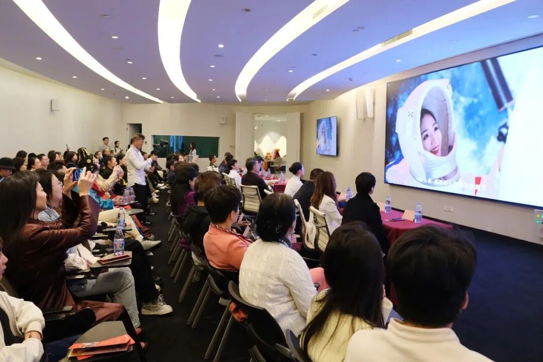 发布会现场,科技感与喜庆氛围交织。外形酷似大飞碟的深圳太空馆,以独特的流线型结构与光影效果,营造出沉浸式的“星际”环境,将现代航天科技元素与传统中国婚俗礼仪创造性结合所带来的震撼。