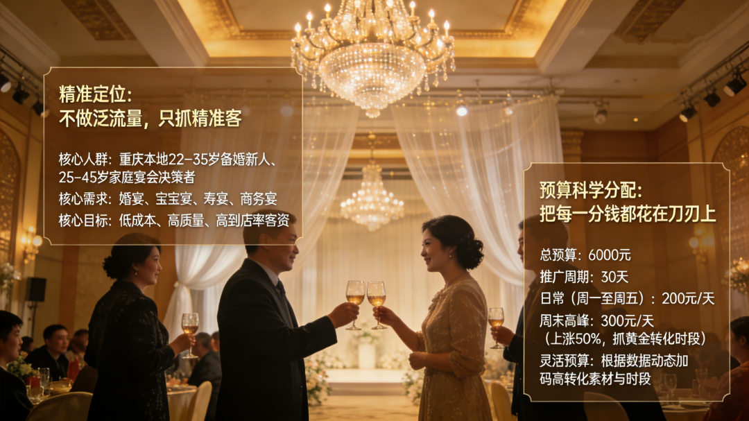 第二,线上获客盲目跟风,钱花了没结果。照搬通用短视频模板,只会拍空宴会厅硬广,账号标签混乱,流量全是外地泛粉,看似播放量不低,却没有本地精准咨询,投流成本越涨越高,有效客资却寥寥无几。