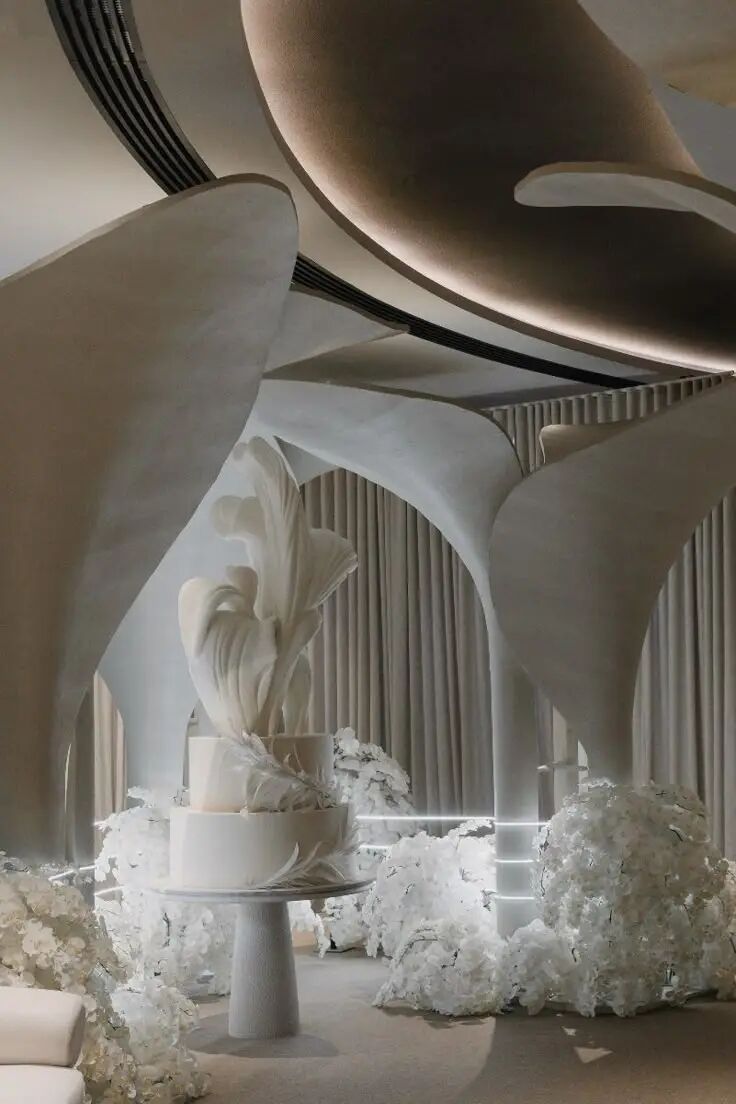根据国外网站The WED发布的2026年流行设计预测,花卉设计正从精致的插花演变为具有建筑美感的艺术表达。所以,雕塑般的花卉装置、悬挂的花枝、优美的垂幔以及对留白的巧妙运用将更加流行。