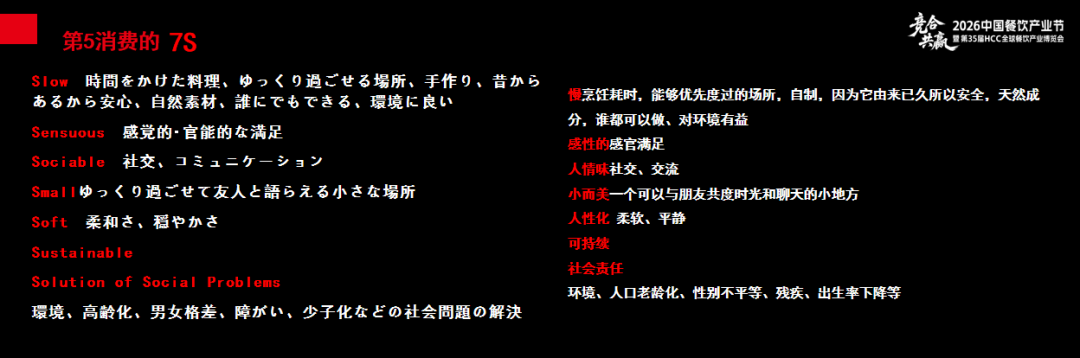 第五消费时代,三浦展提出了“7S”关键词——慢、感性、人情味、小而美、人性化、可持续、社会责任。